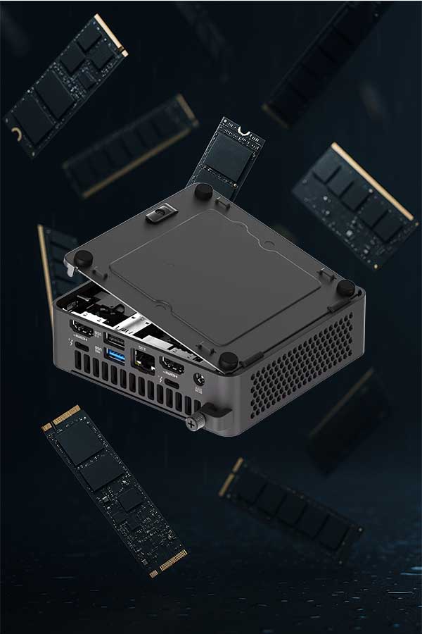 Cand alegi un mini PC ASUS NUC, te intereseaza sa fie exact pe stilul tau de lucru. De aceea, ai libertatea sa selectezi memoria RAM si spatiul de stocare in functie de ce ai nevoie cu adevarat. Totul este gandit ca tu sa iti faci propriul setup, fara limitari.